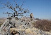 Ich hatte die Möglichkeit Titus und einen seiner Jagdgäste zu begleiten. Dieser Jäger kehrte zum zehnten Mal nun nach Namibia zum jagen und zu Titus als Jagdführer zurück – zu einem Jagdführer, der bemerkenswert kompetent ist und in jedem Augenblick ein angenehmer Zeitgenosse.
