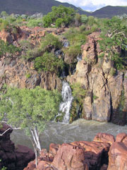 3.Tag: Nach der Abfahrt von Hobatere passieren wir das Veterinärtor ‚Werda’ und das greifbare Abenteuer Afrika beginnt: Erste Begegnungen mit den Einheimischen des Kaokovelds – den Ovahimba und Herero. Picknick unterwegs. Via Opuwo, gen Norden fahren wir entlang von Mopanewäldern, vorbei an Himbasiedlungen tiefer in das Kaokoveld nach Epupa. Dort empfängt uns das Palmenparadies der Epupafälle am Kunene Fluss. Umsäumt von grünen Makalanipalmen fließt der Kunene, und bildet hier die Grenze zu Angola. Nachmittags Besichtigung der Fälle mit kleiner Wanderung entlang des Kunene zu verschiedenen Aussichtspunkten. Abends atemberaubender ‚Sundowner’ mit Blick auf die Epupafälle und das gesamte Kunene Flusstal.