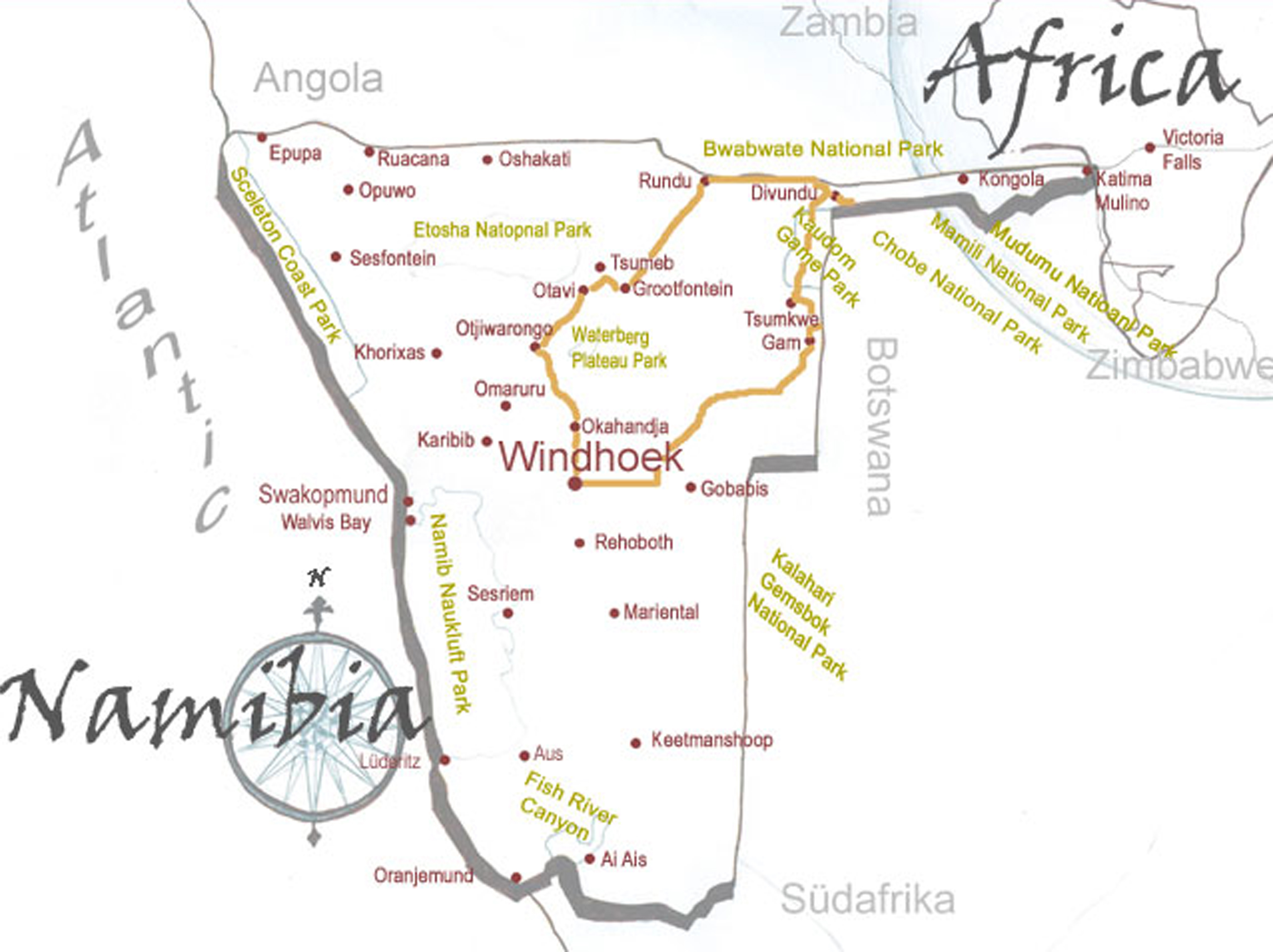 travel route - Bushman camping safari - 'off-road'