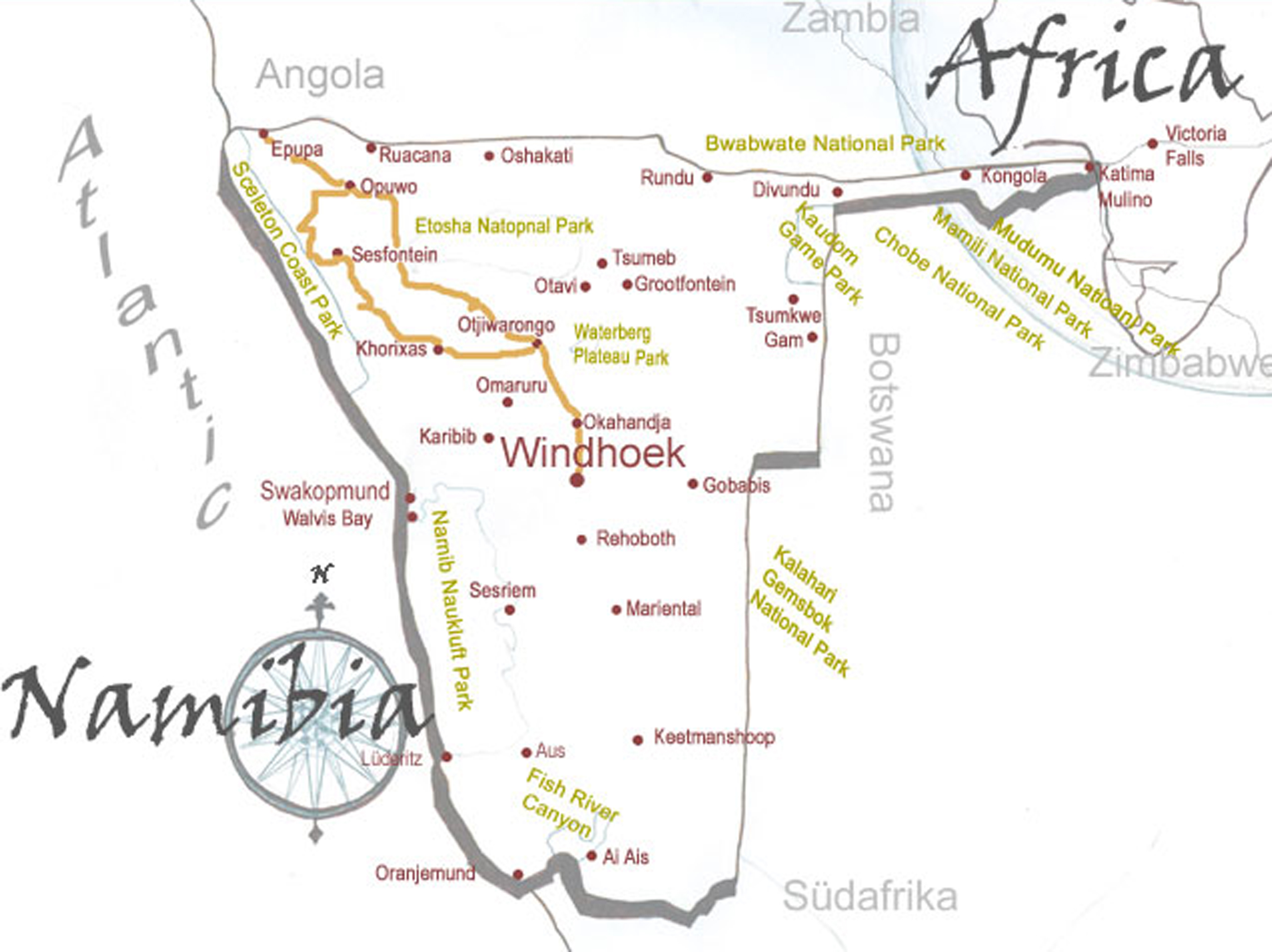 travel route - Himba camping safari