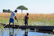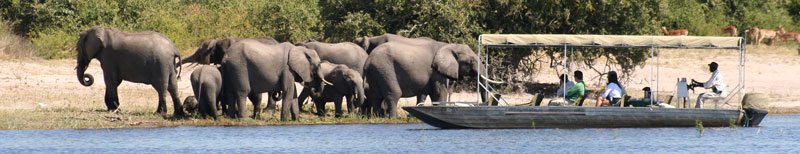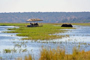 5.Tag: Zu Wasser: Mit dem Boot erreichen wir heute die artenreiche Tier- und Pflanzenwelt des Chobe National Parks, die Schwemmflächen und Inseln. Der Wildreichtum im Chobe National Park ist überwältigend. Herden von Elefanten und Flusspferden erwarten uns, die bunte Welt der Vögel, ausgewachsene Krokodile, am Ufer stehende Antilopen, Warzenschweine, Paviane und auch mal Großkatzen. Zwischen dem Schilf begegnen uns hier und da die einheimischen Fischer, die mit ihrem Einbaum den Sumpf durchqueren und Fischnetze auswerfen. Die Bootsfahrten am Morgen und Nachmittag sind zur Wildbeobachtung optimal - für Fotografen und solche, die es werden wollen, ein Traum!