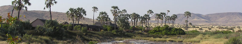 Palmen, eindrucksvolle Damaralandschaft, Schwarze Nashörner und Elefanten: Das ist Palmwag Lodge.